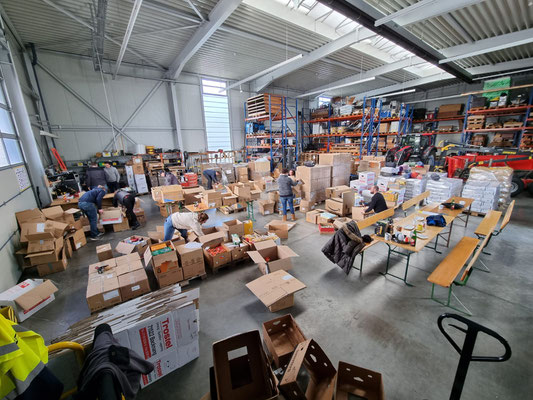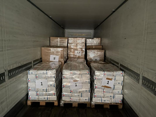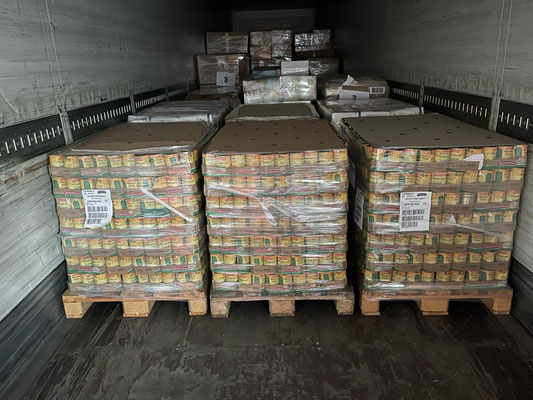 Bereits einen Tag nach der erfolgreichen Übergabe sind die dringend benötigten Hilfsgüter in die Vororte rund um Kiew und in die Krisengebiete weitergeleitet worden. Vor allem viele Paletten mit Konserven, Lebensmittel und Wasser. Dort gibt es aufgrund der Bombenangriffe keine Einkaufsmöglichkeiten/Supermärkte mehr.