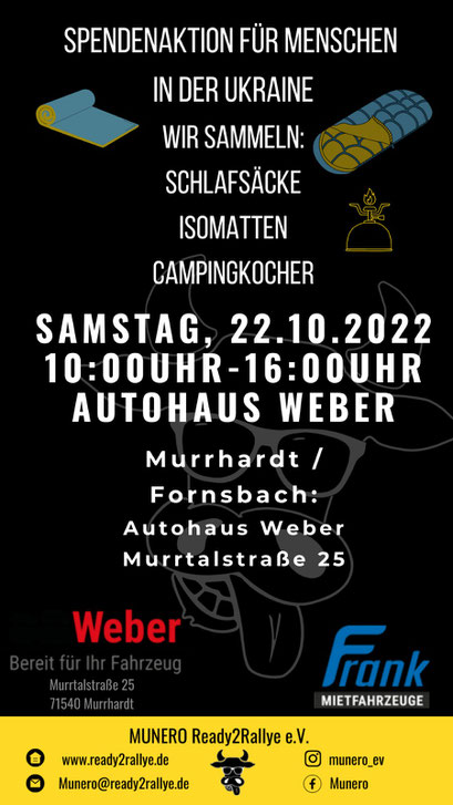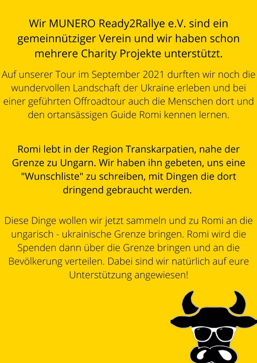 Wir als MUNERO – Ready2Rallye e.V. möchten hiermit nochmal ein dickes, fettes DANKE aussprechen und würden uns über Eure Unterstützung auch bei zukünftigen Rallyes sehr freuen.